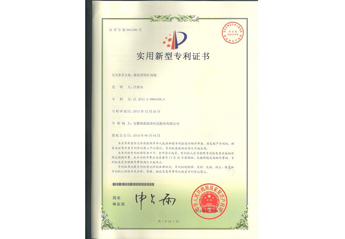 專利密集型產品認定-閘閥