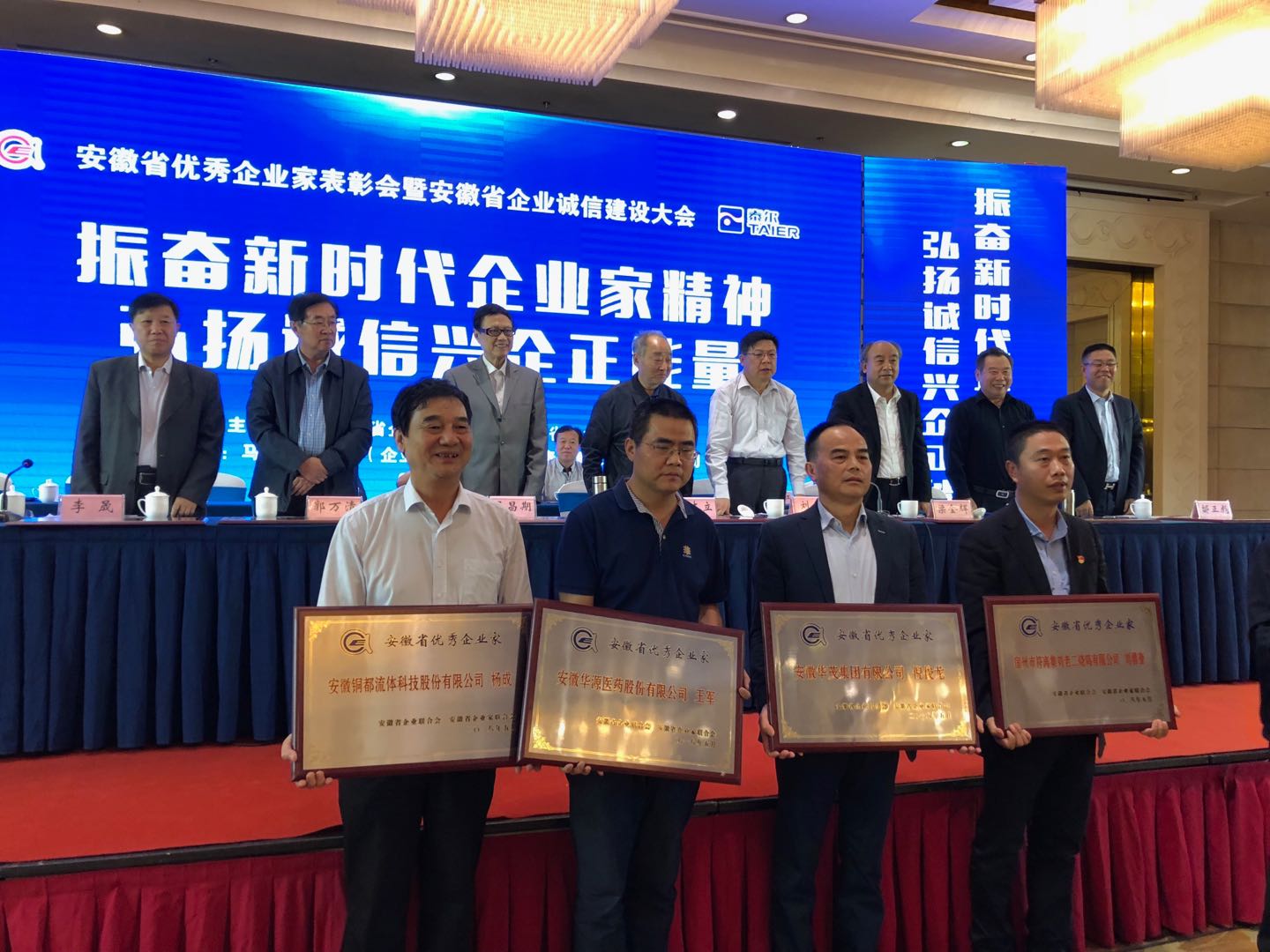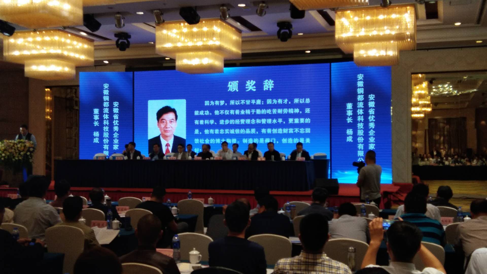 公司董事長(zhǎng)楊成作為銅陵市代表,榮獲"安徽省優(yōu)秀企業(yè)家"榮譽(yù)稱號(hào),并出席了安徽省優(yōu)秀企業(yè)家表彰會(huì)暨安徽省企業(yè)誠(chéng)信建設(shè)大會(huì)頒獎(jiǎng)儀式。