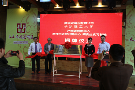 揭牌儀式上,英諾威閥業(yè)有限公司董事長楊凌杰介紹企業(yè)發(fā)展情況,長沙理工大學(xué)李志鵬教授介紹產(chǎn)學(xué)研創(chuàng)新中心建立及項(xiàng)目合作情況,長沙理工大學(xué)能源與動(dòng)力工程學(xué)院副院長劉忠講話。